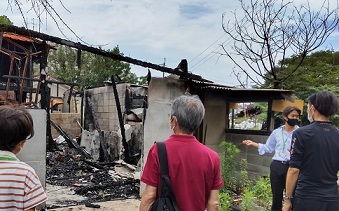 金秀煥さん:放火による被害を受けたのは7軒ですが、そのうち5軒が空き家で、2軒は民家でした。犯人の調書を読んでみると、彼の狙いはそこに保管してあった看板と、もう一つは飯場だったのです。飯場も祈念館に展示するので、飯場と看板を燃やして、祈念館を阻止してやろうと考えていたようです。飯場の解体が6月末だったので、かろうじて無事でした。現在は祈念館の入口に移築されています。