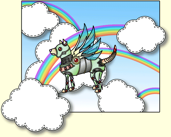 「飛ぶ」「機械チックな動物」「雲」「虹」と、