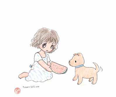 色鉛筆で描いて下さいました。柴犬はうちのじょんだそうです。うふふふ。ありがとうございます!