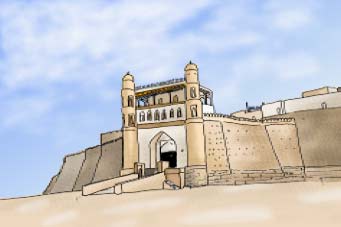 とにかく破壊されたり虐殺されたり包囲されたりと戦争続きの城塞なので、しょっちゅう壊れては同じ場所に城塞を作り続けてきたのだが、まだイスラム化していない、ゾロアスター教時代の影響が見られたりして、ゾロアスター教を勉強していた私には嬉しい場所だったりするのだが、その後8世紀にアラブ人に壊され修復し、12世紀にもチンギス汗に壊され修復し、16世紀にもブハラ汗が建て直したり、そして現存する建物は18世紀の物らしい。このアルク、ロシア侵入の11820年まで、最後のブハラ汗であるサイル・アミル汗が住んでいた場所だ。