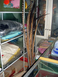 10時頃劇場を出てチョイと観光。張さんと譚さんに京劇の飾りや小道具、楽器などを売っている店に連れて行って貰った。店は一軒では無く、その通りには何軒ものお店が有り、目的の店に無ければ、すぐ隣に、又無ければその隣に探しに行けるようだった。
