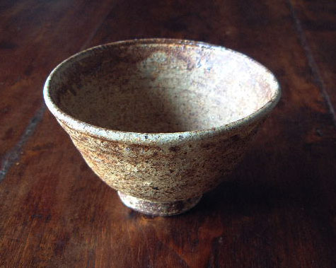 鉄分の多い粗目の土に化粧泥を施し、ごく薄く灰釉をかけました。釉薬が焦げたような風合いになって渋い印象を与えます。形がとても気に入っています。