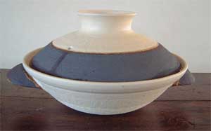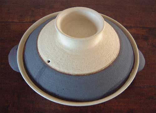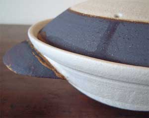 真横から見たところです。なんの変哲もない土鍋ですが、欲しいと思っていてもなかなかこういったシンプルな鍋がないので自分では気に入っています。