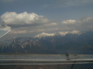 南へ渡る。平岡ダムがtpであり、西斜面を飛ぶ。3−4m/sで楽しく12000位を上下しながら飛ぶ。DG400と交信。DG500に南の状態を伝えるとこちらへ向かうとのこと。午後三時になったので帰投することにする。
