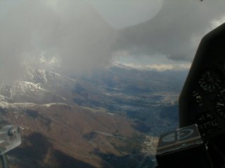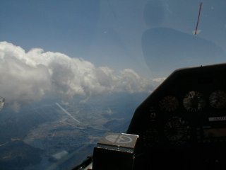 高度を速度に変えつつ南下しながら、松本空港から離陸するジェットを高みから見物する。4時30分を越えた。そろそろ帰ることにする。ローター以外の雲が一散した空を一路長野へ向かう。5時過ぎに対地1000FTで長野着。