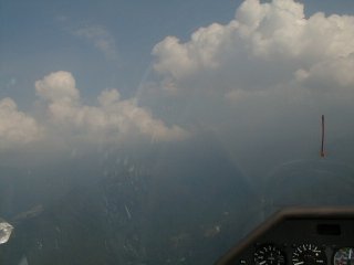 1999−9−12 朝から北風。2−5m/sへ徐々に強まる。夏にしては珍しい。 志賀方面は積雲が発達している。行ってみると日射がなく、雲底も1200mのため、あまり上がらないリッジと弱いサーマル(強いところで2−3m/s)で防錆運転をかねて飛ぶ。何時間でも浮いていられるが山の向こうへは行けないモードでした。坂口さんの初ジュニア有り。