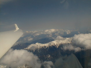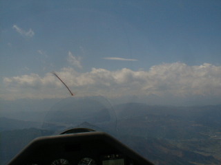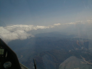 エンジンテストをして対地400Mでリッジにとりつく。K6が苦労している下へはいる。対地1200M程度しか上がらない。長野の10K南の谷で約40分もじたばたしたが上がらない。流されながら+を拾い戸倉をパスして西へ向かう。