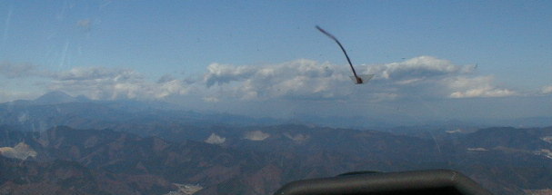 200-230k/h出しても上昇していく。黒磯を過ぎ1.5近くになっていた。呼吸を整え恐怖心をのぞいて脳の酸素消費量を減らしながら飛ぶ。ヨガの心得が役立つ。野崎さんのことを想いながら「俺はこのまま北上したら酸欠で意識不明になり速度もオーバーし、正に天国行きだ。まだ野崎さんに再会したくない。今あの世への階段を昇り始めているのだ」と本当に生命の危険を感じた。意識のある内に戻ることが今やるただ一つのことだ。(後日談だが、喫煙の習慣のある人は酸素の減少に鈍感で自覚が少ないそうだ。私はいつもハイポキシアの前に酸欠を意識しているのはたばこを吸わないせいかなと思う。板倉の嶋田さんより。)