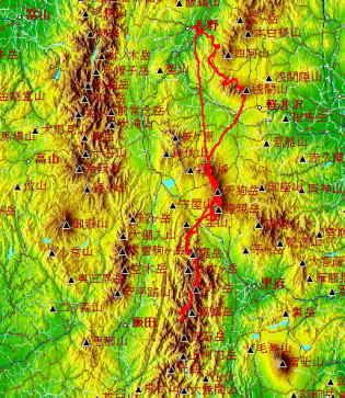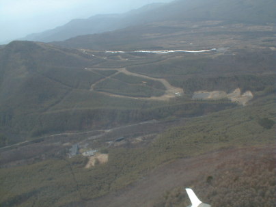 菅平の西の山で+があったとの505の話を信じてエンジンランで行くが+1程度がやっと。一応北風と考えて四阿山の南にある丘のリッジを使って飛ぶ。途中、不時着場の牧場をにらみながら飛ぶと親切な鳥さんが近くで廻りだした。大きさと翼の黄金に輝く縞模様からも鳶なんかじゃない。鷹だ。しばらくアイコンタクトしながら上がる。浅間で505が廻っている。まだ南下しないのだろうか。だいぶ高いようだ。