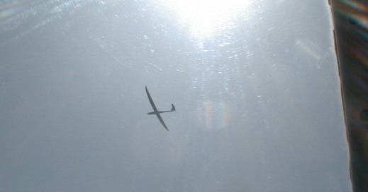 南端まで行くがあまりよくない。戻ったところ505がやってきてしばらく一緒に飛ぶ、というか後をついていく。昨日は20M翼で2777より少し性能がいい程度だと思った。今日は22M翼で飛ばれているのでその比較をしたかった。延びはとても良いようだ。上がりは同等かな。