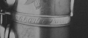 Parkerのネーム入り。パーカーの楽器はシリアルナンバー30万番前後で1949年製だと思われる。