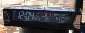 電波時計と電圧計が付いているので買ってみたが、結果から言うと明るい場所では表示が見えず使えない。