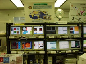 スーパーコンピューター室にはNECのスーパーコンピューターが有った。宇宙天気予報。ここでは南極やアラスカ