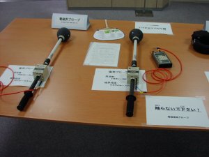 携帯電話と心臓ペースメーカーの関係等の研究結果の紹介や人体模型を展示していた。資料によると現在の携帯