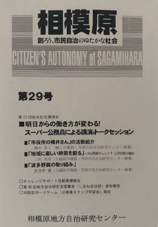 第27号 設立20周年記念号 ・・・23年9月発行 設立20周年を迎えて 武田 秀雄(相模原地方自治研究センター理事長) 相模原自治研活動の総括と課題 田中 充(相模原地方自治研究センター副理事長) 設立20周年記念講演記録 SDGs(持続可能な開発目標)の理念から見る地域・自治体 谷本 有美子(法政大学社会学部社会政策科学科准教授) 20years of history 設立からのあゆみ(自治啓発事業、出版活動、歴代役員、規約) |