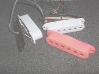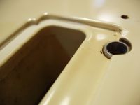 要するに「ブリッジがノーマルだけど1Vo1Tone」の前期STM、「1Vo2Toneだけどブリッジが二点支持」の後期STM、後者はF川モデルのパクリで、ブリッジの4つのネジの頭だけを接着、今回、前者はピックガードを小加工して、どちらもなるべくノーマル(オールド)ルックに近づけたワケですね。