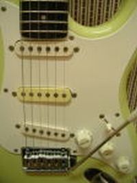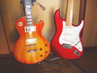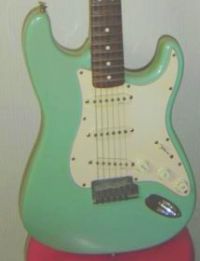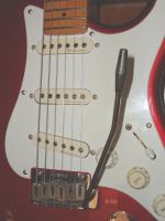 派手にアームを使わなきゃ、スパロゴだったし「ST57M−58」(だったかな?)のが良かった位で、メイプル・サンバースト・スパロゴとういうことで、スパロゴSTMの後KSCで買ったんだけど、「傷をつけない内に翌日委託に出した」のは、やはり弦間ピッチが11mm以上あって馴染めなそうだったからです。