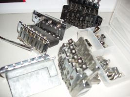 例えば「ネック・ボディに大きなガタがないのに、かなり安く売ってる(特にアーム付き)ギター」を買う時の次の条件は、ブリッジ系の欠品がないかどうかです。他のパーツは、多少の工夫でかなり転用出来ますからね。