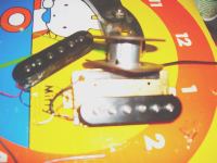 Aピックガードとコントロール部のプレートはダミー(これも前オーナーの自作物。PUがカバードで「真っ黒」で愛想がないから、プレートは、エポキシ系のメッキ調スプレーで塗ってみるかも。PUカバーにゼブラの絵でも描こうか(爆)逆に遠目にはEsquireに見えていいかも(苦)))
