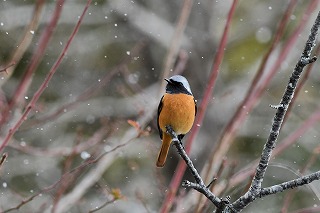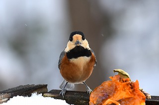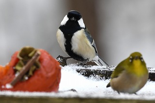 証明写真風(2026/01) 大雪が降った日、庭先に集う小鳥たちに熟した柿の実とヒマワリの種を提供しました。代わりに被写体になってもらいました。今回は正面からの証明写真風で紹介します。これはこれでユニークな顔つきでした。 |