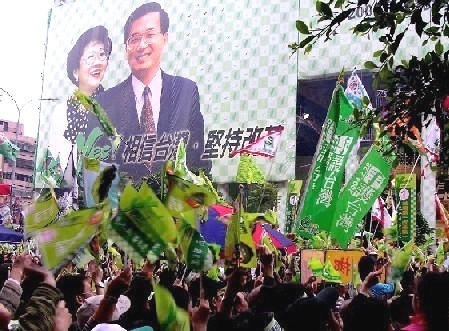 総統選挙投票日前日の19日、夕方。アメリカ、ヨーロッパ、アジア各国などに定住する台湾人や、「台商」と呼ばれる駐在員が多数、投票のために帰国し、民進党の陳水扁総統と呂秀蓮副総統支持者は台北市・中山サッカー場で開催された集会に出席。 しかし、同日午後、台南市で起きた陳総統と呂副総統に対する銃撃事件のため、午後6時から8時まで予定されていた大会はわずか30分ほどで中止された。 野党統一候補の連戦国民党主席と宋楚瑜親民党主席の支援集会は、蒋介石中華民国元総統を偲んで建てられた中正紀念堂で開催予定だったが、こちらも陳総統と呂秀蓮副総統への銃撃事件を理由に集会を中止した。 しかし会場では、陳総統と呂秀蓮副総統への銃撃事件は「劣勢を挽回するための自作自演ではないか」という噂がささやかれていた。 投票日前日まで、世論調査ではわずかに連戦国民党主席と宋楚瑜親民党主席の統一候補が上回っていた。 20日の投票日当日。午前8時からの投票開始とともに多くの有権者が投票所に並んだ。当日は総統選挙とともに、中国のミサイル配備に対する軍事力強化などを問う住民投票も行われた。 ところが、国民党が住民投票ボイコットを呼びかけたため、投票所内では連戦支持者の大半が住民投票用紙の受け取りを拒否し棄権。 住民投票法の規定では、有権者の半数以上が投票し有効票のうち半数以上の同意が必要とされるため、台湾初の住民投票は有権者数の半数に達せず成立しなかった。 午後4時に投票が締め切られ、直後から開票が始まった。民進党支持者は台北市中心部の党選挙対策本部前に集まり、党のシンボルカラーである緑の旗を振りながら、街頭に設けられた大型スクリーンに映し出される開票結果に見入った。 開票当初から終始、陳水扁候補が連戦候補を上回り、100万票に達した直後からは常に5万票差を保ち続け、開票結果が進むたびに勝利を確信する歓声が何度もわき上がった。 午後9時過ぎ、数千人規模にふくれあがった民進党支持者の前で、陳水扁候補の当選確実が伝えられると、花火が打ち上げられ、爆竹が鳴り響いた。 この集会で支持者がさかんに話題にしていたのは「台湾独立」ではなく、国民党一党支配のもとで続いた政治家や官僚を中心とする政治腐敗や金権政治を意味する「黒金」政治が、民進党政権の継続により一掃されることへの期待感だった。 中央選挙管理員会の当選決定を受け、午後10時過ぎ、民進党支持者の前に表れた陳水扁総統の演説を現地テレビ局が報道。陳総統は、「皆が力を合わせ新しい台湾を作ろう」と呼びかけた。先に登場した呂副総統は車椅子に乗って壇上に上がり、松葉杖をついて立ち上がり挨拶をした。 対立候補の野党連合の連戦・国民党主席との差は約3万票の小差だった。テレビで当選確実が伝えられた後、当選を喜ぶ支持者が車を連ねて市中心部を走り回る光景も見られた。 一方、落選した連戦国民党主席は、副総統候補の宋楚瑜親民党主席とともに選挙対策本部で挨拶し、連国民党主席はすぐさま、「銃撃事件の真相が明らかにされず、選挙結果に影響が出た不公平な選挙であり、選挙は無効だ」と主張した。 前日には、銃撃事件で台南市から台北市へ戻った陳水扁総統と呂秀蓮副総統の見舞いに訪れた時と違って、連戦と宋楚瑜の両氏は終始、厳しい表情のままだった。 連戦と宋楚瑜の両氏による選挙結果の無効などを求める主張が報道された直後から、国民党支持者を中心とする抗議行動が各地で起きつつあることを現地テレビ各局が報道。当初は、台湾中部の台中市や南部の高雄市で警察との小競り合いが伝えられた。 この報道を見た市民の中には、「抗議行動の先頭で暴れているのは檳榔(ビンロー)をかみながらの人物が多い。国民党に雇われた連中が騒動を煽るために暴れているのだろう」と言う人もいた。しかしその後、抗議行動に参加する人数が増加。この事態に対し、民進党陣営の動きはほとんど報道されなかった。 ◆ 君在前哨/中国現場情報 ◆ | ▲ このページの最初へ