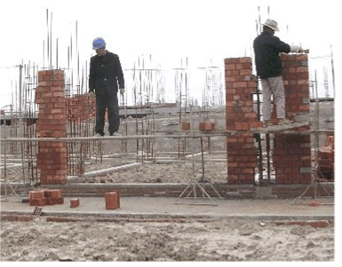 (写真=建設現場では、他省から仕事を求めてやってきた農民が建設労働者として働く)