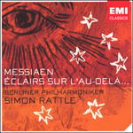 かつてバーミンガム市交響楽団の音楽監督だったサイモン・ラトルは、その任期の最後の10年間(正確には、その最後期はそのポストをサカリ・オラモに譲っていましたが)に、「Towards the Millennium(ミレニアムに向かって)」という、現代曲にこだわったシリーズを敢行していました。定期演奏会で集中的に20世紀の作品を演奏、それを来たるべき次の千年紀に引き継ごうという、壮大なプロジェクトだったのでしょう。アルミ、プラスティックスと来て、次は何になるのでしょう(それは「洗面器」)。その成果の一部は96年に「Leaving Home(故郷を離れて)」というテレビのドキュメンタリーとして紹介されました。これは98年頃に日本でもで放送されましたので、ご覧になった方もいたことでしょうが、ここでラトルは自ら番組のホストを務め、20世紀の音楽について熱く語っていたのでした。そして、ミレニアムの境目である2000年に、まさに千年紀の総決算として、このメシアン自身の作曲技法の総決算である「彼方の閃光」を、初めて演奏することになるのです。