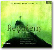 モーツァルトの「レクイエム」の、さまざまな版には目のない人にとっては、「リオ・デ・ジャネイロ版」などという今まで聞いたこともなかったような名前が挙げられれば、何をおいても飛びついてしまうことでしょう。これは、この曲が初演されてから30年近く経った1819年に、ブラジルのリオ・デ・ジャネイロで演奏された際に、最後の楽章である「Communio」という、「Lux aeterna」で始まるテキストを用いた曲のあとに、例えばフォーレやヴェルディの作品には含まれる「Libera me」という楽章を加えたものなのです。この部分を作曲したのが、ジギスムント・フォン・ノイコムという、1778年生まれのオーストリアの作曲者です。彼自身も1815年にパリで初演されたハ短調の「レクイエム」(唯一の録音はCAMERATA/25CM555)も作っています。つまり、この「リオ・デ・ジャネイロ版」というのは、モーツァルト、ジュスマイヤー、そしてノイコムという3人の作曲家の合作によって出来上がった曲なのです。ただ、この楽譜は長いこと知られることはなかったのだそう。それが、ごく最近リオ・デ・ジャネイロの大聖堂の書庫で発見され、それを用いて2005年11月にほぼ200年ぶりに「再演」された模様が収録されたのが、このCDだと言うのです。まるで測ったかのように「モーツァルト・イヤー」に間に合ったというのが、歴史の縁(えにし)というものなのでしょうか。それとも・・・。