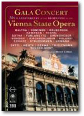 昨年2005年は、戦災にあったウィーン国立歌劇場が再建され、オペラの上演が再開されてから50年が経ったという記念すべき年だったのだそうです。そこで、それを祝ってガラ・コンサートが開かれることになりました。もちろん、会場は満席、「ガラガラ」になることはありませんでした。11月の5日に開催されたそのコンサートの模様が完全収録されたのが、このDVDです。3時間に及ぶその豪華な催しを、存分にお楽しみ下さい。残念なのは、これがNTSCという普通のテレビの規格だということです。もっとも、現在国内で出ているDVDは全てこの方式によるものなのですが、元々のソースの制作はオーストリア放送協会とNHKが共同で行ったもので、しっかりハイビジョンで収録されています。そして、これは先日NHKBSのハイビジョンチャンネルで放送されましたから、それなりの装置を持っている人であれば無料で(もちろん、システムに費やした資金は無視します)見ることが出来るだけでなく、HDに保存しておけば、将来市場に出回るであろう次世代ヴィデオディスクとして残すことも可能なわけです。ですから、それよりもはるかに画質の劣る(あくまでも、それなりの装置を持っている人に限りますが)ディスクをわざわざお金を出して買うことにどれほどの意味があるのか、という点については納得のいかない部分が残りますが。