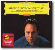 今、ジョージ・ロンドンがブームなのでしょうか。つい先日SONYから「ボリス」のハイライト盤が復刻されたばかりだというのに、今回は、なんと完全初出(なんかいやらしいイメージを持つのは、私だけ? それは「完全丸出し」・・・あ〜あ、ほんとのおやぢになっちゃった)の「黒人霊歌集」ですからね。DGの「スポットライト」という、歌手のリサイタル盤を復刻したデジパックのシリーズ、本体はあの「オリジナルズ」と同じ、チューリップレーベルが印刷されています。しかし、そこにはもはや「CDロゴ」が見当たらないことにご注目。結構、最近のものにはこれがないようになっていますよ。