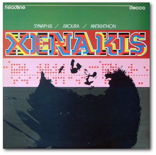 ちょっと聞き慣れないレーベル名、これはLP時代の珍しいカタログをCD化するために最近作られたものです。復刻の対象は特定のレーベルにはこだわりませんが、最初のリリースとなる今回はDECCAのものを集中して扱っています。このクセナキスはおそらく初CD化でしょう。これが、1976年にリリースされたLPのジャケット、当時DECCAが現代音楽のために設けていた「HEADLINE」というサブレーベルの中の1枚です。
