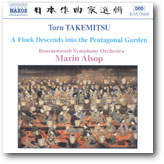 NAXOSの日本人作曲家シリーズとしては、以前の室内楽を収めたアルバムに続く2枚目の武満徹の作品集、今回はオーケストラ曲、それも後期の作風を反映したものが主になっています。まさに、メシアンと、そしてドビュッシーの語り口と肌合いを色濃く持つに至った最晩年1994年の「精霊の庭」に見られる、ほとんど甘美なまでのテイスト、すなわち「タケミツ・トーン」を存分に味わうには、このアルバムは格好のものとなっているはずです。細心の注意を払って集められた音階とリズム、それらを夢見るようなハーモニーと音色で包み込んだこの曲を聴く人は、それがフランス人の先達の語法が彼の手によって昇華された、まさに一つの人類の遺産であると言っても過言ではないことに気づくに違いありません。