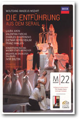 とりあえず国内盤が出ているものを優先させることにして、「M22」のレビューの第2弾は「後宮」にしました。もちろん、私が購入したのは安い輸入盤のボックスですから、日本語字幕は付いてはいません。仕方がないので英語の字幕に頼って見ていると、あちこちで「abduction」という単語にお目にかかります。もちろん、これはドイツ語の「Entführung」に相当する言葉なのですが、これは日本語に訳せば、「拉致」とか「誘拐」という意味になりますよね。普通このオペラのタイトルは「後宮からの逃走」という邦題が一般的ですが、昔はよく使われていた「後宮からの誘拐」というのも、あながち間違いではなかったのですね(確か、国内盤DVDのタイトルはこちらを採用)。