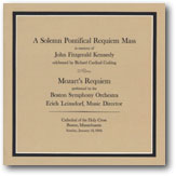 このCDは、1963年の11月22日にテキサス州ダラスで殺された(「敵、刺す」でも、刺殺ではなく射殺)当時のアメリカ合衆国の大統領、ジョン・フィッツジェラルド・ケネディを追悼するために、翌年1月19日にボストンの聖十字架大聖堂で行われた「死者のためのミサ」の模様を収録したものです。言ってみればドキュメンタリー録音のようなものなのですが、そこで用いられた音楽が、モーツァルトの「レクイエム」だということで、「クラシック」のLPとして録音直後に発売されました。日本国内でもその年の3月に発売になったといいますから、当時としては異例とも言えるスピーディなリリース、それだけこの事件が全世界に与えた影響は大きなものだったということなのでしょう。