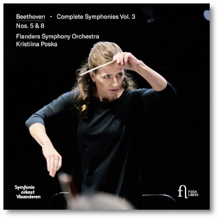2024年にリリースされていた2枚目については、こちらでご紹介してありますが、その時は「2番」と「3番」でしたね。こちらの録音は2022年と2021年に行われています。そして、2021年にリリースされていた1枚目では「1番」と「7番」が収録されているのですが、それは首席指揮者就任のシーズンに録音されていたのですね。まずは、この、どこのオーケストラにとっても重要なレパートリーであるベートーヴェンの交響曲の全曲録音を、彼女に託した、ということなのでしょう。 彼女のベートーヴェンの交響曲に対するスタンスは、もうこのツィクルスの開始時には確固たるものになっていたはずです。2枚目を聴いた時にまず感じたのが、徹底したピリオド・アプローチでした。たとえば、弦楽器は完全にノン・ビブラートで演奏されていましたが、普通のモダン楽器のシンフォニー・オーケストラでは、それを徹底させるのは結構難しいようですね。 ところが、このオーケストラがベートーヴェンを演奏している映像では、本当に全員がノン・ビブラートであることがはっきり分かります。もちろん、それは音を聴いただけでもよく分かります。ですから、例えば「5番」の冒頭のフレーズの最後のロングトーンなどは、本当にストレートで断定的な思いがしっかり伝わって来ます。 もちろん、木管楽器でも、極力ビブラートを抑えていることもはっきり分かります。そんな、ある意味ストイックなアプローチで、かなり早めのテンポでの演奏は、とても輪郭がはっきりしていてすがすがしい感じがします。このテンポに関しては、指揮者のポスカはブックレットの中で、「ベートーヴェン自身の書いたメトロノームの値を具現化した」みたいなことを言っていましたね。確かに、このテンポからは、とてもエネルギッシュな音楽を感じることができます。特に、「5番」の第2楽章あたりは、ちょっと速すぎるのではないか、という気もしなくはないのですが、それが妙に納得できるのは、彼女がそのような自信をもって演奏しているからなのではないでしょうか。 第3楽章では、版によっては最後の部分からトリオをもう1回リピートする、という解釈もあるようですが、ここではそれはなく、そのままフィナーレにと続いていましたね。 「8番」では、やはりそのテンポの速さによって、この曲に抱いていたイメージが大幅に塗り替えられてしまったような気がします。第1楽章の圧倒的なテンポ感からは、それまで感じたことのなかったようなエネルギッシュなものが発散されていましたね。第2楽章も、それこそシンドラーが改竄した会話帳のようなほのぼのとしたものではなく、もっと強い意志のようなものが感じられます。 3楽章のトリオでは、ホルンが、これはモダン楽器でとてもソフトに演奏していましたね。おそらく、ここをナチュラルホルンで演奏したら、ちょっとギスギスしたものになってしまっていたことでしょう。 終楽章では、やはり攻撃的な面が強調されていたような気がします。そして、エンディングが、まさに「5番」と同じほどのしつこさでアコードのパルスが繰り返されるのですが、それが全く唐突には感じられなかったのは、それまでの演奏がそれに見合うだけのまるで若人のようなエネルギーを持っていたという証なのではないでしょうか。 いずれの曲でも、ティンパニがとても積極的に音楽を引っ張っていましたね。 これで、残りは「4番」、「6番」、「9番」の3曲になりました。CDだったらおそらく「4番+6番」と「9番」という2つのアルバムとしてリリースされるのでしょうが、1枚目はCDも発売されていたものの、2枚目以降はデジタル・オンリーになっていまたから、もしかしたら残りの3曲もまとめて1つのアルバムになるのかもしれませんね。早く「9番」を聴いてみたいです。 Album Artwork © Outhere Music |