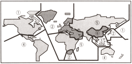 このように、劇場公開の前にDVDが出回ってしまうと興行収入に大きく影響が出てきてしまうと考えたアメリカの映画会社は、DVDのメーカーに働きかけて、特定の地域以外で購入したソフトは再生が出来ないような姑息な制度を作ってしまいました。それが「リージョン・コード(Regional Restriction Codes)」というもので、世界を下図のように6つの地域(リージョン)に分けて、それぞれの地域内で販売されたソフトは、同じ地域内で販売されたプレーヤーでしか再生できないようにするものです。もちろん、アメリカと日本が異なる地域になっているのは言うまでもありません。なぜか、日本とヨーロッパと南アフリカが同じ地域となっていますが、もともとテレビの方式自体が全く異なっているので(NTSCとPAL)わざわざ別のリージョンにする必要もないのでしょう。