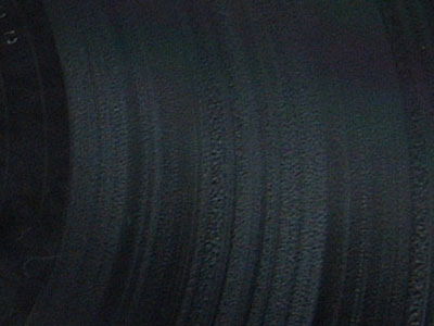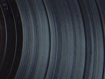 ところが、ここで、ちょっと疑問が起きませんか?クラシックの場合、例えば「運命」と「未完成」が表と裏に入っていたLPってありませんでした?ベートーヴェンの「交響曲第5番」は30分ちょっと、シューベルトの「交響曲第7番」は約25分ほどの演奏時間ですから、合計で1時間弱のものが1枚のLPに収録されていたことになりますね。そもそもLPというのは、1時間以上入れることが出来るフォーマットではなかったのでしょうか。ですから、それを「2枚まるまる」せいぜい80分しか容量のないCDに収めることなど、出来るものなのでしょうか。そうです。確かに「クラシック」の場合は、LP1枚に1時間以上入れることは可能です。ものの本によれば、「片面」に収録された最長のものは「エロイカ」全曲でなんと46分46秒だそうですから、単純に2倍にすれば1時間33分32秒までは「入る」ということになります。しかし、ポップスでは、特にロックなどの場合、どんなに頑張ってもそれは45分以上は無理なのです。音楽の種類によって収録時間が違うなんてあり得ない、と思うかも知れませんが、これは厳然とした事実。その鍵は、このLPの溝を撮った写真に秘められています。