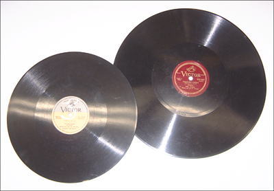 これは、毎分78回転という、かなりの高速で回転しているターンテーブルの上に乗せられ、鉄や竹の針で表面の溝から音を取り出して再生を行います。1面全部再生するのに、せいぜい3分か4分しかかかりません。つまり、切れ目なしに音楽を演奏できるのは、長くても4分間ということになります。クラシックの場合、小品でしたらこれでも何とかなりますが、交響曲のような長いものだとそうはいかず、当然、1曲のために何枚もの盤が必要になってきます。