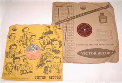 ところで、78回転盤の場合、のちのLPのジャケットというものに見られるような、盤面全体を覆うパッケージは普通は用いられず、このように、真中に穴が開いて、レーベルを直接見ることが出来るような紙袋が使われていました。