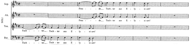 普通は "Freude, Tochter aus Elysium!" と歌われている部分なのですが、ここでは"Tochter, Tochter aus Elysium!" となっています。