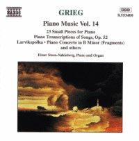 ピアノ協奏曲の成り立ちについての記述と、スケッチから復元された〔譜例3〕が掲載されています。ちなみに、オスロ・エドヴァルド・グリーグ委員会とオスロ大学音楽学研究所との共同作業によるグリーグ全集の刊行は、1995年にこの第20巻が出版されて、すべて完了しました。