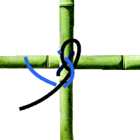横竹を絡めるように上へ出し締める。 | 裏から見ると縄が図のように絡んでいる。 |