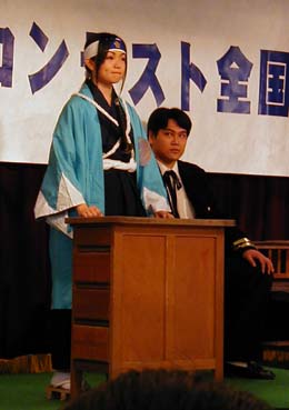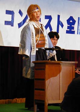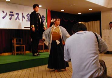 | 女性の方ですが、とても凛々しい歳さんでした。このコンテストに参加される女性は、凛々しい方が多いですね。 | 今回の共演者方は大鳥さんと榎本さんです。しかし、主役を食っていたのではないかと噂のあるお二方(笑)とても素人とは思えないアドリブを披露してくれました。 | |
