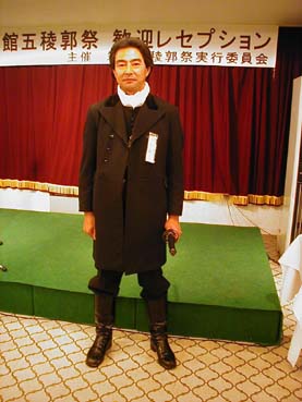 箱舘稜雲社の塾頭扮する歳さんです。表彰式の後に撮らせていただきました。本当にそっくりですよね〜。ファンの方が多いとのことです。 |