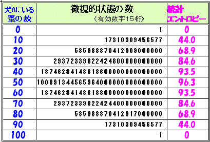 100匹の蚤のエントロピー表を完成しなさい。