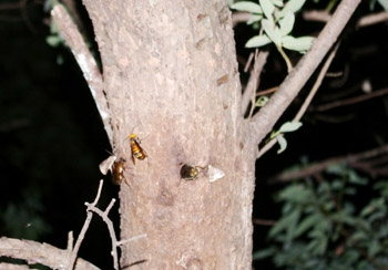 ヤナギにも、もちろんスズメバチはいます。 カブトムシやコクワ、ノコギリが数多くいるので夢中になりすぎ 気がつかずに近づいて刺される事もあるので注意がいります。 今回、私もはじめて知ったのですが、多摩川は、羽村大橋より 下流すべて自然保護区域になっており、採集禁止のうえ、 河川敷進入も禁止されているとの事です。 当然、材割りなどは×。河原で採集しても良いところは、公園と名が つく一部の所だけのようです。 今の子供達は、いったいどこで昆虫採集をしたらいいのだろうか・・。 |