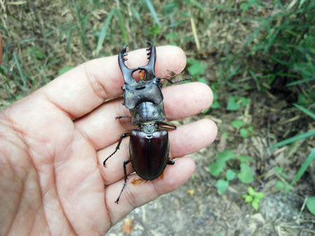 2013/8/18 東京 丘陵地帯でミヤマクワガタトラップ採集は成功するのか? を8月上旬から観察し始めたある日の早朝、絶対こんな所で人と会うことは まずないであろうと思ってたら山の斜面を下って来る年輩の人を見かけた。 右手にカメラ、反対の手にはビニール袋。 もしかしてクワガタ採集?トラップに気づいて採りに来たのか? 遠くからようすをうかがってるとなにやら白いものを草むらに拡げ始め写真を撮ってる。 興味津々、思わず近づいて声をかけてしまった。これは何のキノコなんですか? すると、これはニセクロハツと言ってすべて同じキノコとのこと。 シロウトの私にはとてもすべて同じキノコにはとても見えない 毒キノコで数本食べると死にも至ると教えていただいた。 なぜこんなにも早朝にこんなにも集めてるのか?と思ってると 実は、図鑑の写真だけでは区別がつきにくいので自分でいろんな形の ニセクロハツを集め自分なりの図鑑を作って仲間内?に教えるためなんだそうで・・。 確かに本だけでは学べない経験が必要なんだなと改めて感じた。 ちなみにクロハツなるキノコはちゃんと調理すれば食べられるらしい。 クワガタ採集の趣味の私にはニオイコベニタケというキノコの名前を教えてくれた。 キノコ仲間ではカブトムシに似た匂いがするとのことで有名とのこと。 でも世間一般カブトムシの臭いってどんな臭いと思ってるんだろう・・・か? |