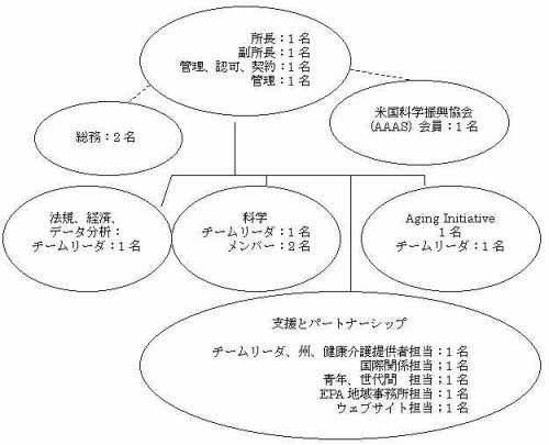 子どもの健康保護事務所は、下図に示す通り、多くの機能を統合した小さな事務所である。