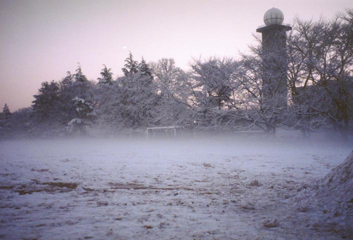 冬の朝、朝焼けの中で地霧が発生していた時のもの。