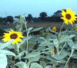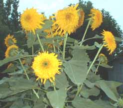 一本茎から何本ものヒマワリが茎を出し、咲くところを見付けました。